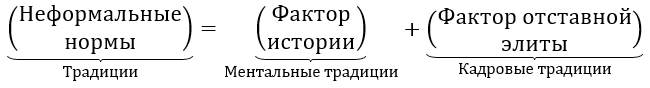 Предыдущий раздел проливает свет на кадровую структуру и динамику властных элит Китая. Однако за бортом рассмотрения оказывается система формирования управленческих решений в стране, которые, как оказываются, существенным образом регламентированы фактором истории. Данное обстоятельство позволяет уточнить нынешнюю институциональную систему Китая в части работы конкретных представителей управленческого сословия. Для этого напомним формулу Д. Норта, согласно которой институты (нормы жизни и поведения) страны распадаются на формальные (законы, постановления, предписания и т.п.) и неформальные (традиции, обычаи и т.п.):