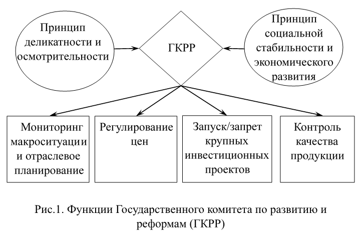 Макроэкономическая функция ГКРР состоит в постоянном мониторинге всех значимых цен, уровня инфляции и безработицы, масштабов и темпов роста всех секторов экономики, составлением отраслевых планов и т.п. В зависимости от складывающейся ситуации принимаются решения по ее урегулированию, причем эти решения могут находиться в ведении разных министерств и ведомств, но их окончательное утверждение и координация осуществляется стоящим над ними ведомством – ГКРР. Таким образом, управленческие возможности экономических ведомств ограничены окончательным вердиктом со стороны ГКРР.